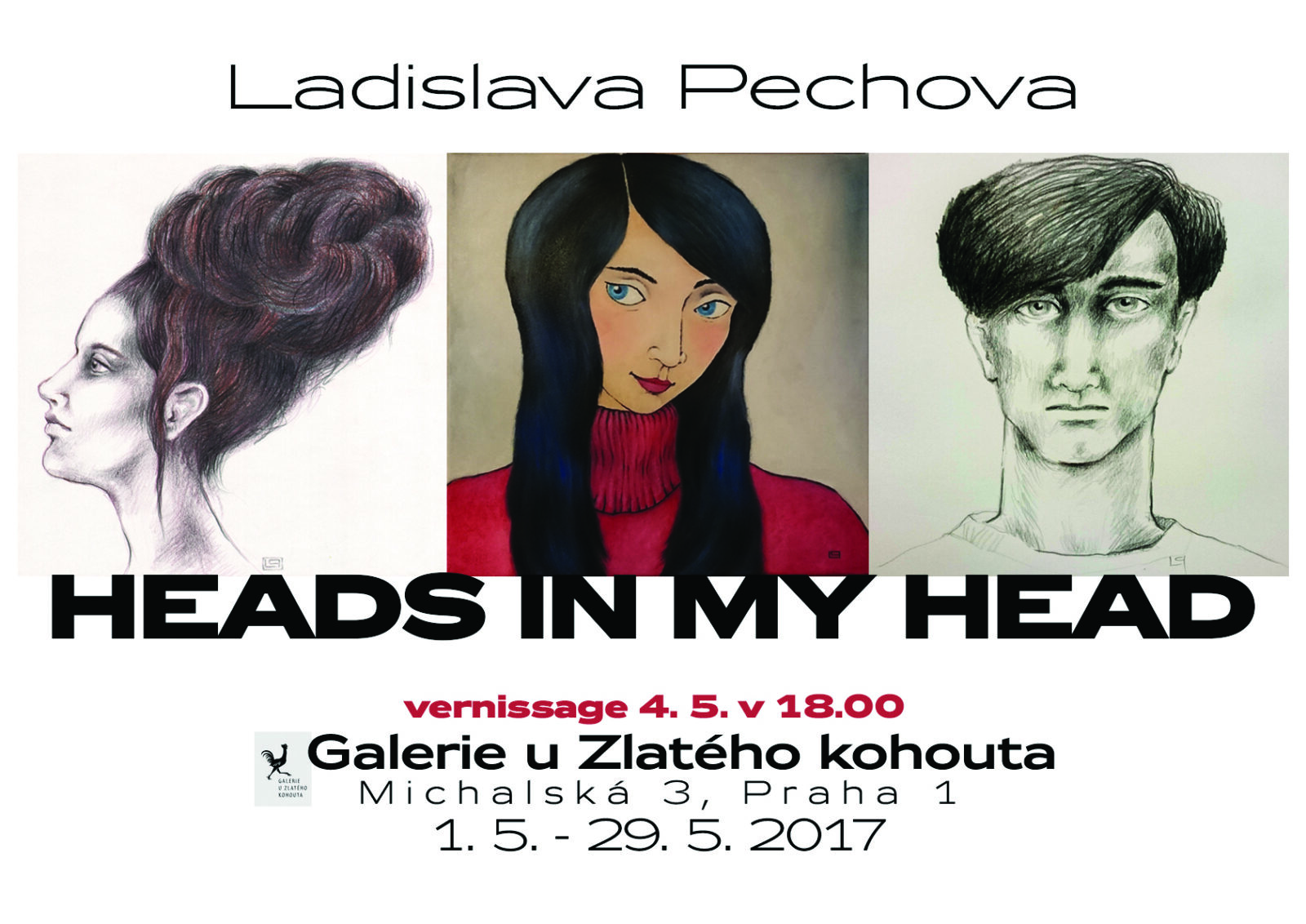 Vernisáž 04.05.2017 v 18:00 Hodin Výstava trvá od 1.05. – 29.05. Otevřeno denně PO-SO: 12:00 – 18:00 Autor: LADISLAVA PECHOVÁ Název výstavy: HEADS IN MY HEAD