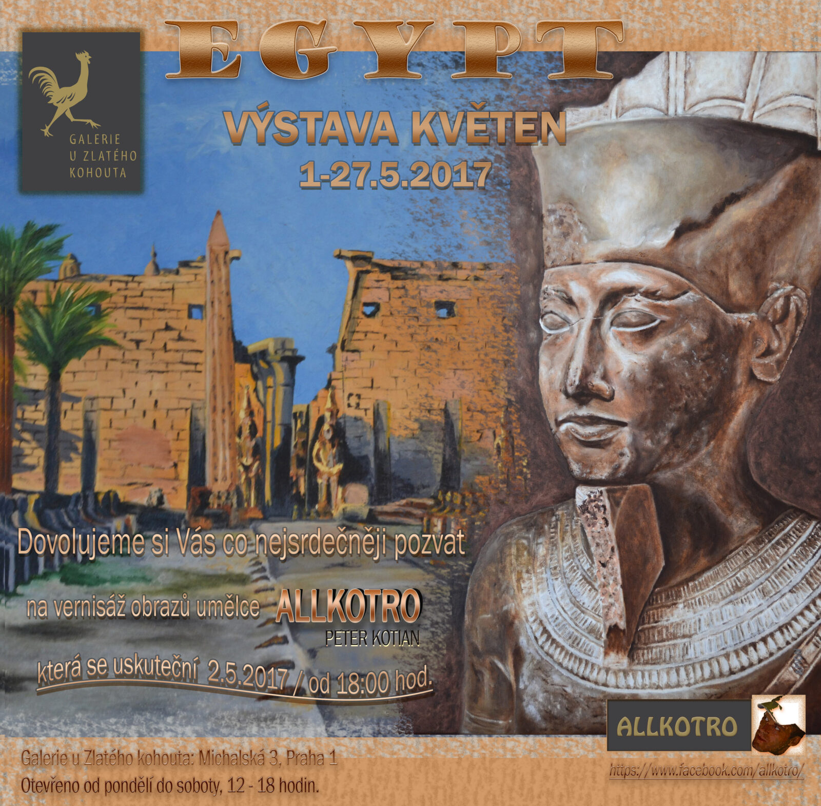 VERNISAŽ – 02.05.2017 začátek v 18:00 Hodin Výstava trvá od 1.05 – 27.05 Otevřeno denně PO-SO: 12:00 – 18:00 Autor: KOTIAN PETER Název výstavy: EGYPT