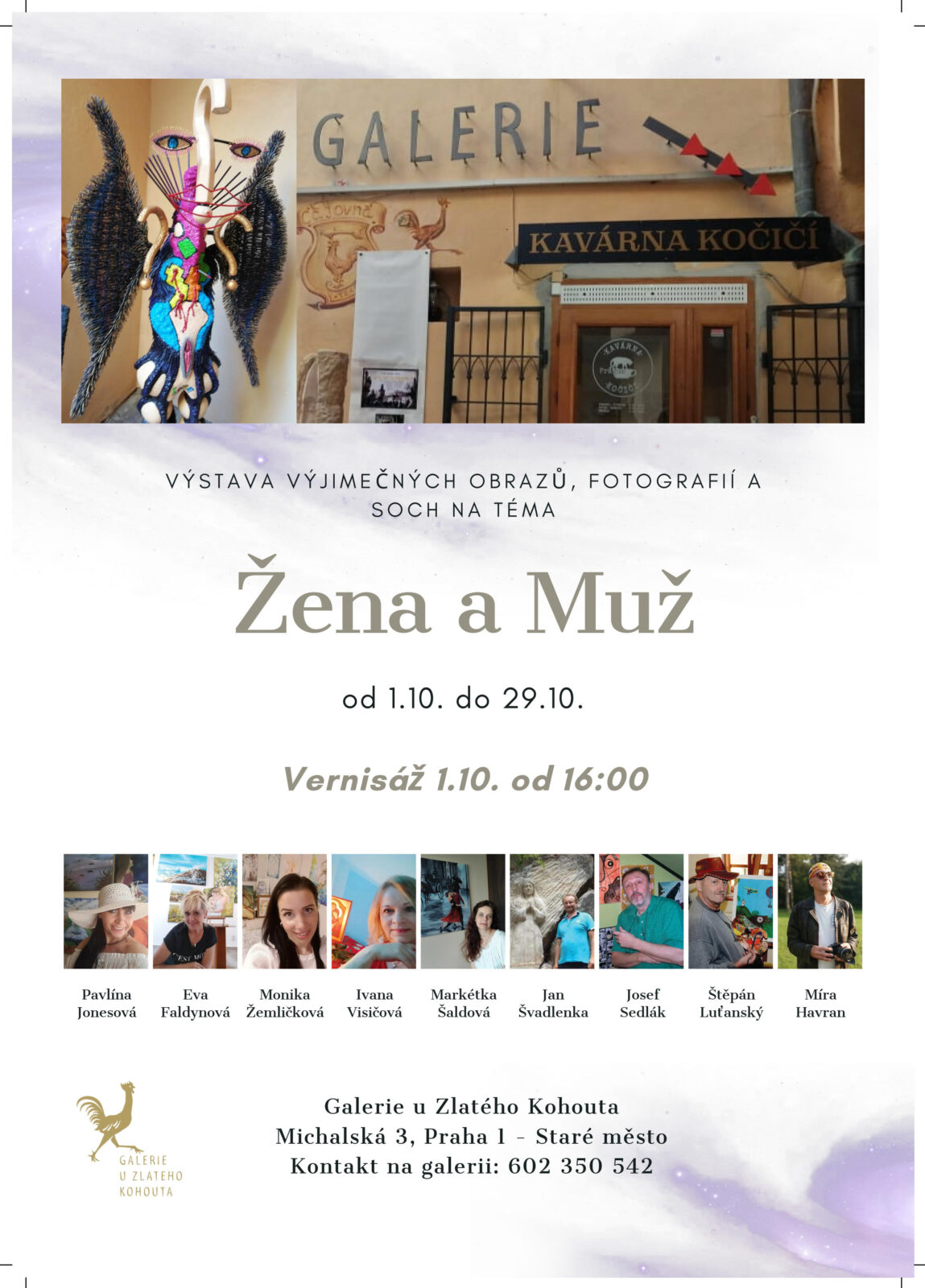 1.10. -29.10. vernisáž 1.10. v 16 h PAVLINA JONESOVÁ, EVA FALDYNOVÁ, MONIKA ŽEMLIČKOVÁ, IVANA VISIČOVÁ, MARKÉTA ŠALDOVÁ, JAN ŠVADLENKA, JOSEF SEDLÁK, ŠTEPÁN LUFANSKY, MIRA HAVRAN
